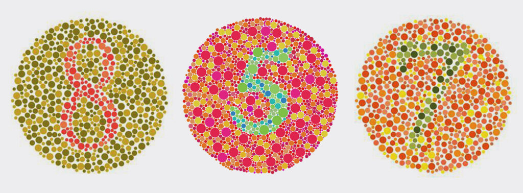 The patient is asked to identify numbers formed by colour spots, allowing the ophthalmologist to determine the type and severity of the dyschromatopsia.